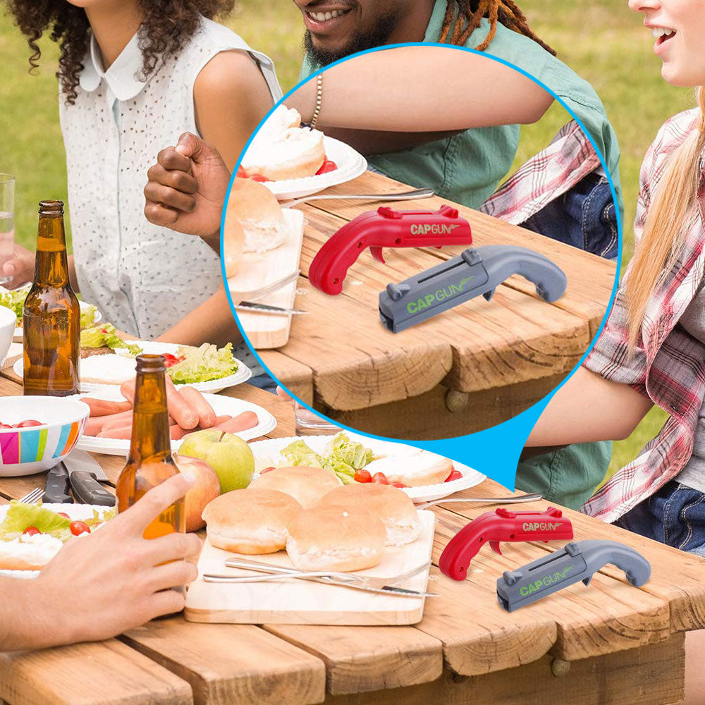 Looking for a cool, new way to open your bottles? Check out the Cap Gun Bottle Opener! This nifty little tool attaches to the bottle and launches the cap off with a loud “bang!” It’s perfect for parties or barbecues, and is sure to be a hit with your friends.